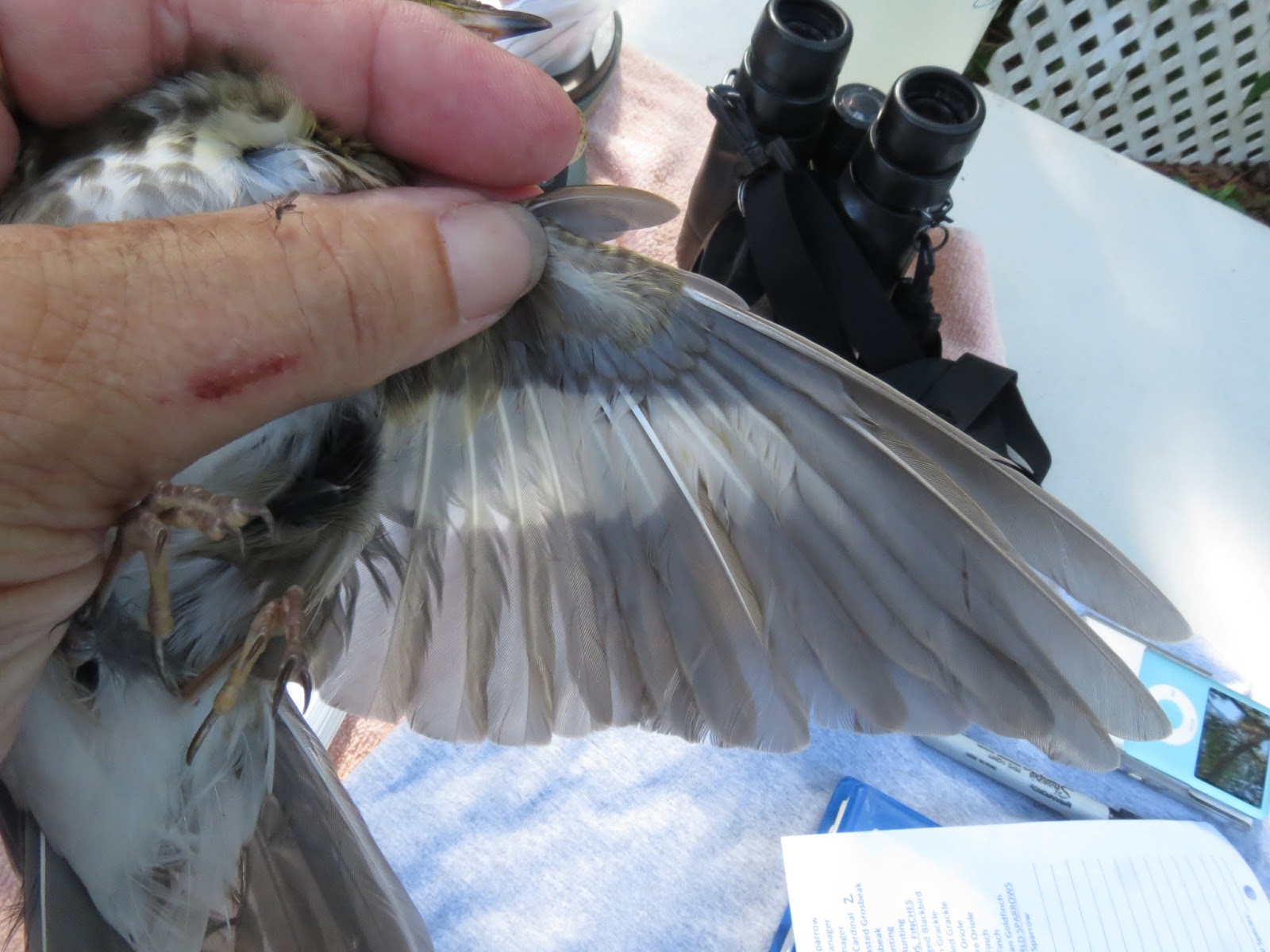 Friday morning we banded at a woodlot. There were new birds both caught and observed there. It was fun to hear Greater White-fronted Geese fly over. A sound we do not get in Florida. I'm not sure of the entire species list banded but some of the birds were: White-throated Sparrow, Song Sparrow, Eastern Phoebe, Ruby-crowned Kinglet (I banded it, new for me!), Northern Cardinal, Swamp Sparrow, and Brown Thrasher. A Northern Mockingbird from a previous festival was recaptured.